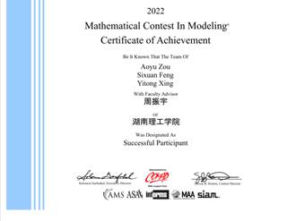 2022年5月6日,2022年美国大学生数学建模竞赛结果公布,湖南理工学院中国成人免费毛片获美赛一等奖一项,二等奖一项,三等奖一项,本次获奖刷新了我院在该竞赛中取得的最高荣誉。