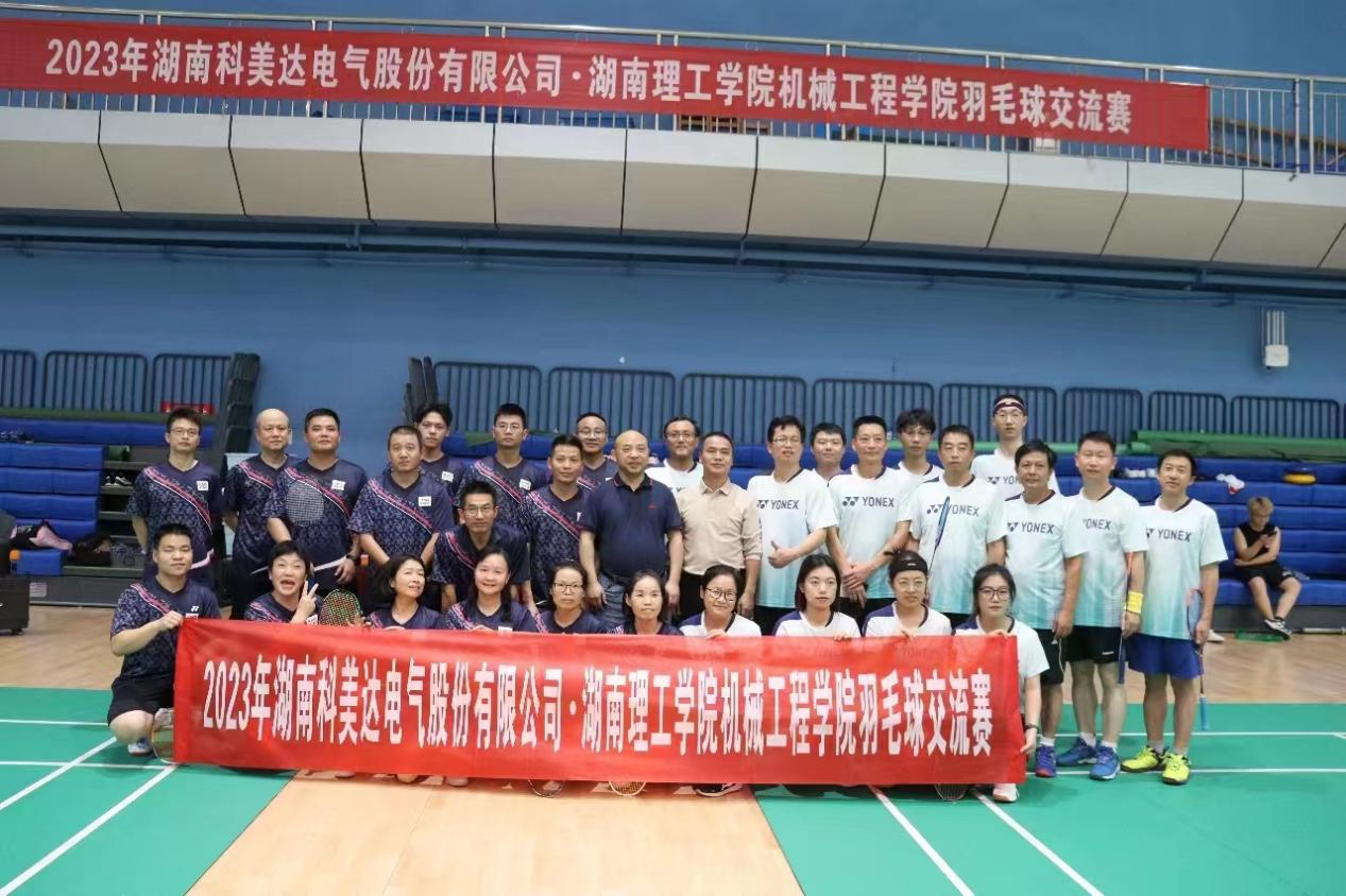11月3日下午15:00至17:30,2023届羽毛球校企交流赛在湖南理工学院学院体育馆顺利举行。此次联赛由中国成人免费毛片与湖南科美达电气有限公司联合主办,湖南科美达电气有限公司职工与中国成人免费毛片师生所组成的羽毛球爱好者齐聚一堂,以球会友,展开了深入交流。