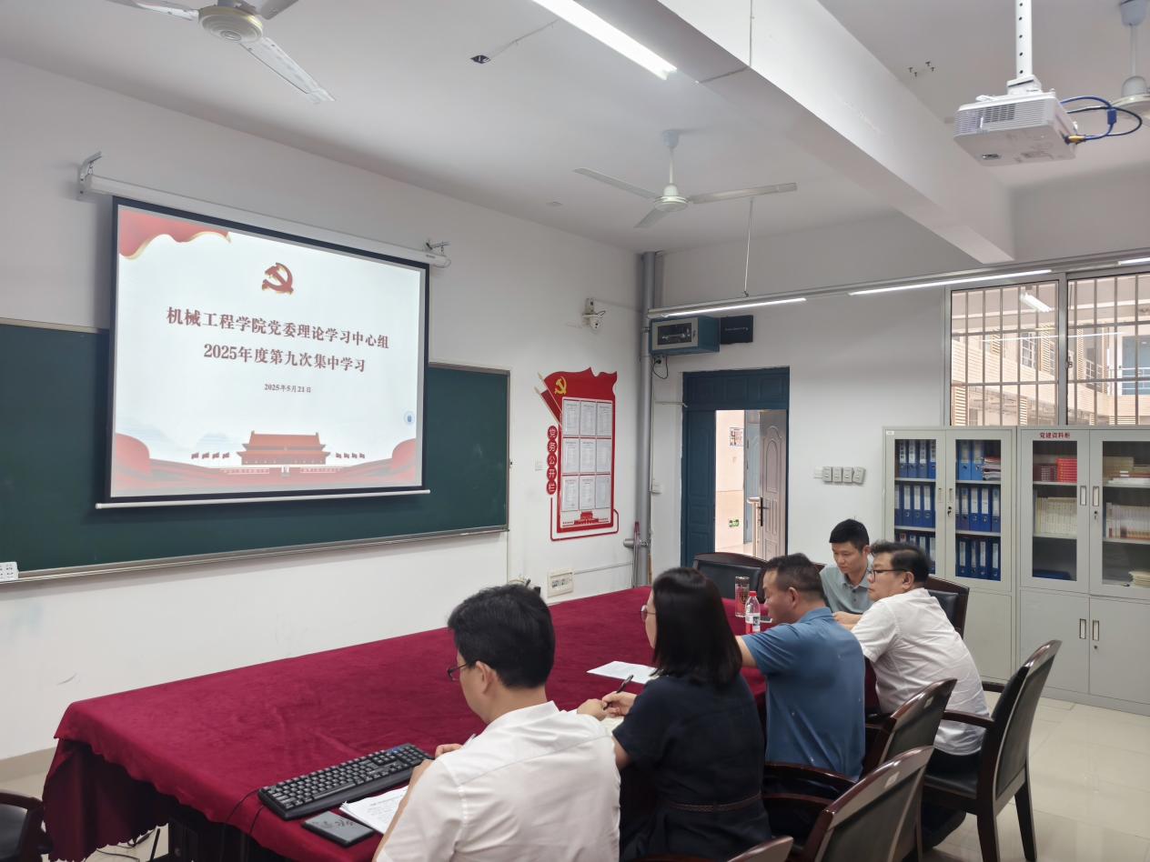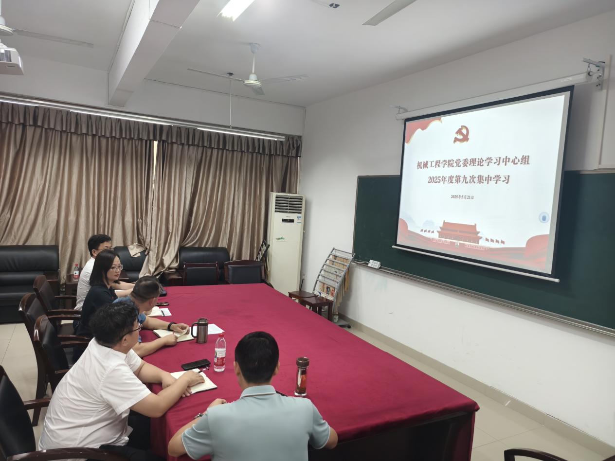 5月21日上午9:00,机械学院党委理论学习中心组在16301B会议室举行2025年度第九次集中学习,学院党委班子成员参加,会议由党委书记徐丹主持。