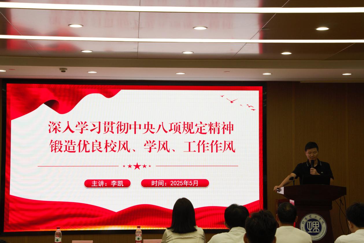 为深入贯彻中央八项规定精神学习教育,强化纪律意识,筑牢作风建设思想根基,2025年5月-6月,我院党员领导干部分别深入各教师、学生党支部开展“深入学习贯彻中央八项规定精神 锻造优良校风、学风、工作作风”主题党课活动。