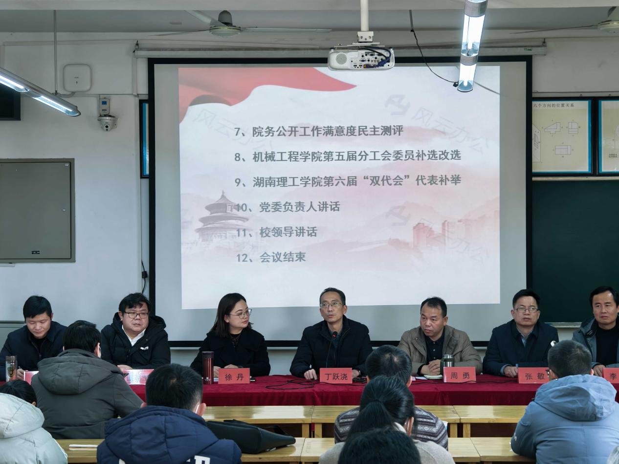 会议第三阶段,全体代表一致通过院务工作报告、分工会工作报告、提案工作报告及院务公开情况说明等四项决议,并顺利完成院务公开满意度测评工作;在学院党委书记徐丹主持下,顺利完成分工会委员补选改选及湖南理工学院第六届“双代会”代表补选工作。徐丹强调,全体教职工要以党的二十大精神为指引,强化责任担当,凝聚发展合力。
