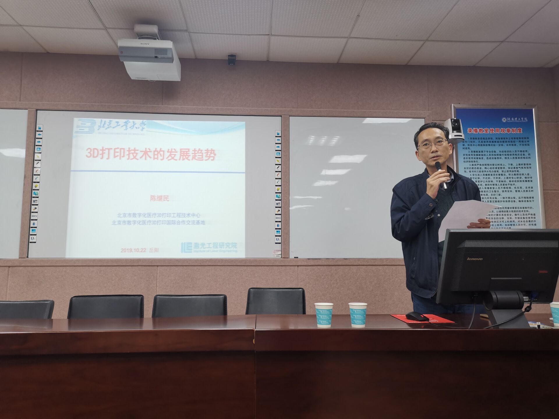 10月22日,机械学院在逸夫楼16517召开《3D打印技术的发展趋势》学术讲座,特邀北京工业大学激光工程研究院教授陈继民为主讲人,院长丁跃浇主持此次讲座,部分本科3D打印爱好者和部分研究生3D打印爱好者参加。