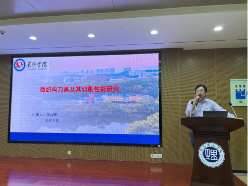 张高峰针对钛合金加工中刀具寿命短的问题,提出了微织构刀具的高效制备技术,详细讲解了所制备微织构刀具在钛合金加工上的应用,并就团队在复合型微织构刀具上的研究进展进行了介绍。