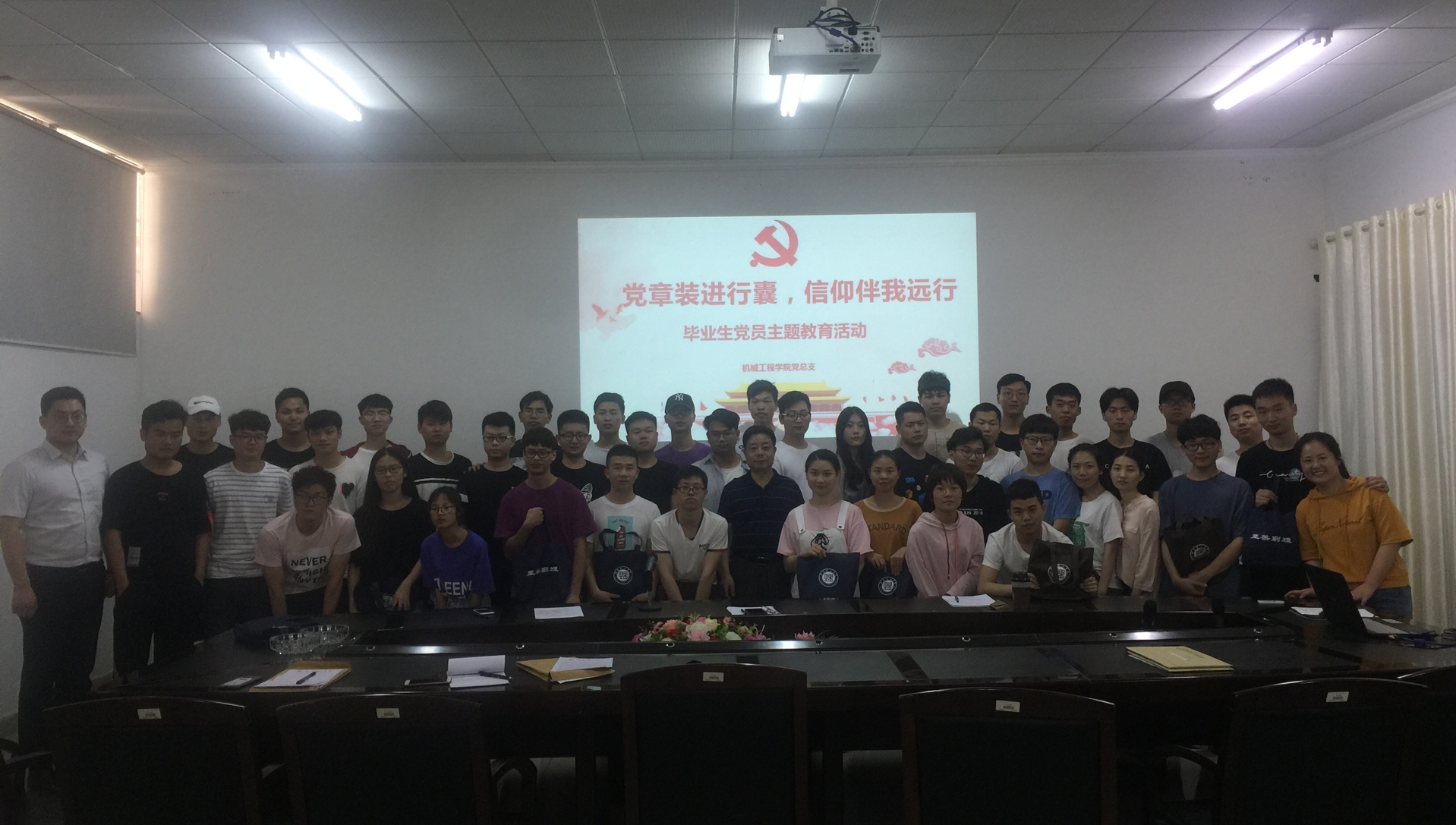 毕业生党员主题教育活动在庄严的国歌中拉开了序幕。会议首先重温了入党誓词由机械学院党总支书记陈积光老师领誓。宣誓完毕后由2019届优秀毕业生党员代表廖誉同学发言,廖誉同学介绍了自己四年来的学习生活以及如何不断提高自己对党的认识,表达了自己对学校和党组织培养的感激之情,并且会在未来的工作生活中以优秀共产党员的标准严格要求自己,努力学习,扎实工作。随后李紫薇老师介绍了关于毕业生党员档案的归档管理工作及毕业生党员的组织关系转移工作。陈积光书记在此次活动中做了重要讲话,他从两个方面对毕业生党员寄予厚望,一是作为一名党员,要有担当、有责任感,要在国家复兴的道路上争做中流砥柱贡献出自己的一份力量;二是对当代大学生党员予以了肯定并且畅谈了国家的发展和未来。他提醒大家作为即将毕业的大学生党员,要坚持“两学一做”,要做“有信仰、守纪律、能担当”的合格党员,坚定自己的政治立场,时刻做好为人民服务的准备,在工作、学习和生活中起模范表率作用。