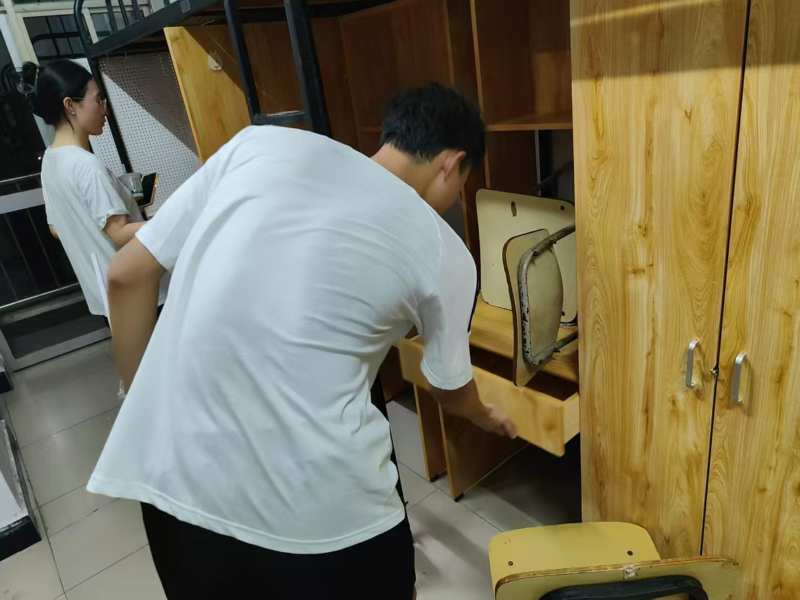 活动过程中,学生党员与新生助班们齐心协力,以高度的责任心和使命感投入到每一项劳动、检查中。他们不仅对宿舍的每一个角落进行细致入微的清扫,确保门窗明亮、地面洁净、垃圾清零,还特别注重对宿舍基础设施的全面检查。从床铺稳固到家具完好,每一项都经过严格的排查,确保新生入住后能够享受到安全、舒适的住宿条件。