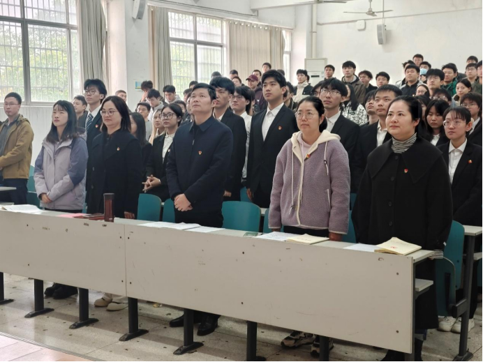 11月26日,我院党委于9T1教室组织开展新党员入党宣誓暨“政治生日”活动。学院党委书记徐丹、副书记李凯、辅导员李紫薇、王荣荣、曾英姿出席本次会议,本科生第二党支部书记吁锤主持,全体学生党员及第51期入党积极分子参加。