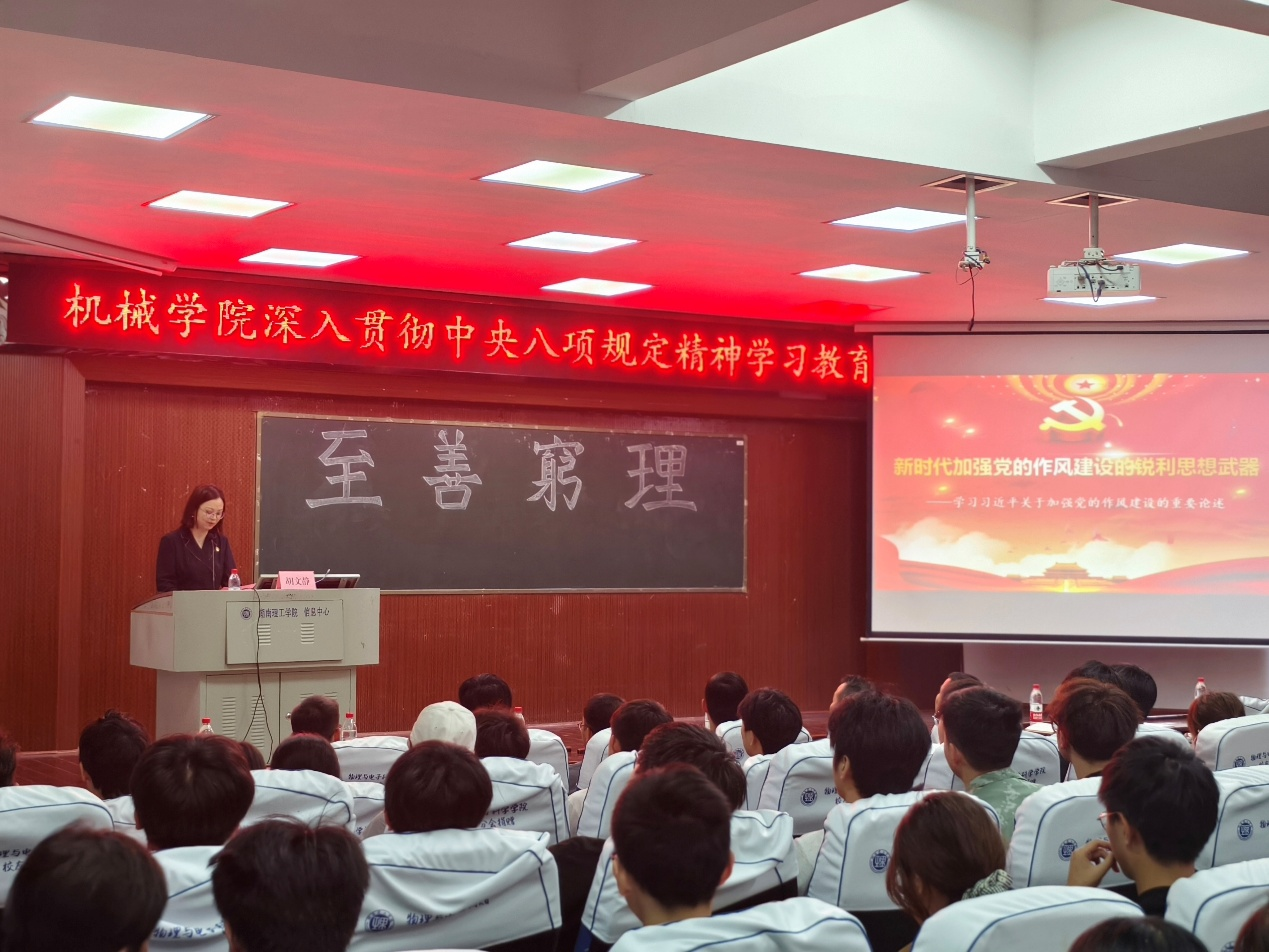 4月22日19:00,中国成人免费毛片在6栋会议厅举行深入贯彻中央八项规定精神学习教育暨第52期入党积极分子党校培训第一课,本次党课特邀校党委委员、组织部部长胡文静主讲,学院党委书记徐丹、副院长(主持工作)周勇、副书记李凯,各教师、学生党支部书记及专职组织员出席,全体学生党员以及第51、52期入党积极分子培训班学员参加,会议由徐丹主持。