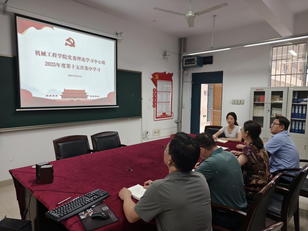 8月5日15:00,机械学院党委理论学习中心组在16301B会议室举行2025年度第十五次集中学习,学院党委班子成员参加,会议由党委书记徐丹主持。