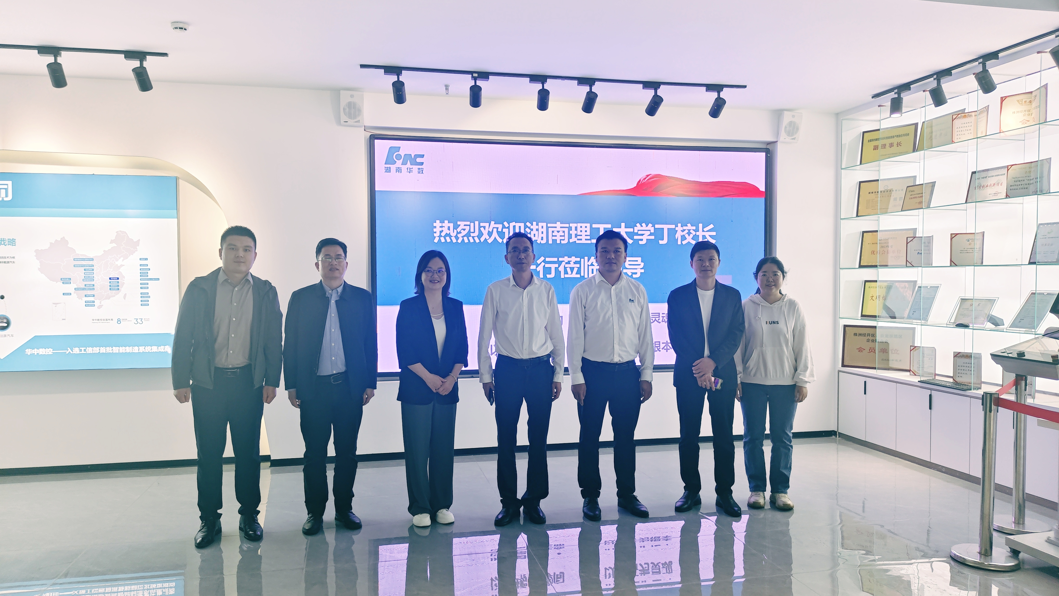 湖南华数智能技术有限公司副总经理邹飞对丁跃浇副校长一行的到来表示热烈欢迎。陪同参观了公司的研发部门以及产品展示区,详细了解公司在智能机械设备、自动化控制系统等核心业务领域的发展现状、技术优势以及未来规划。