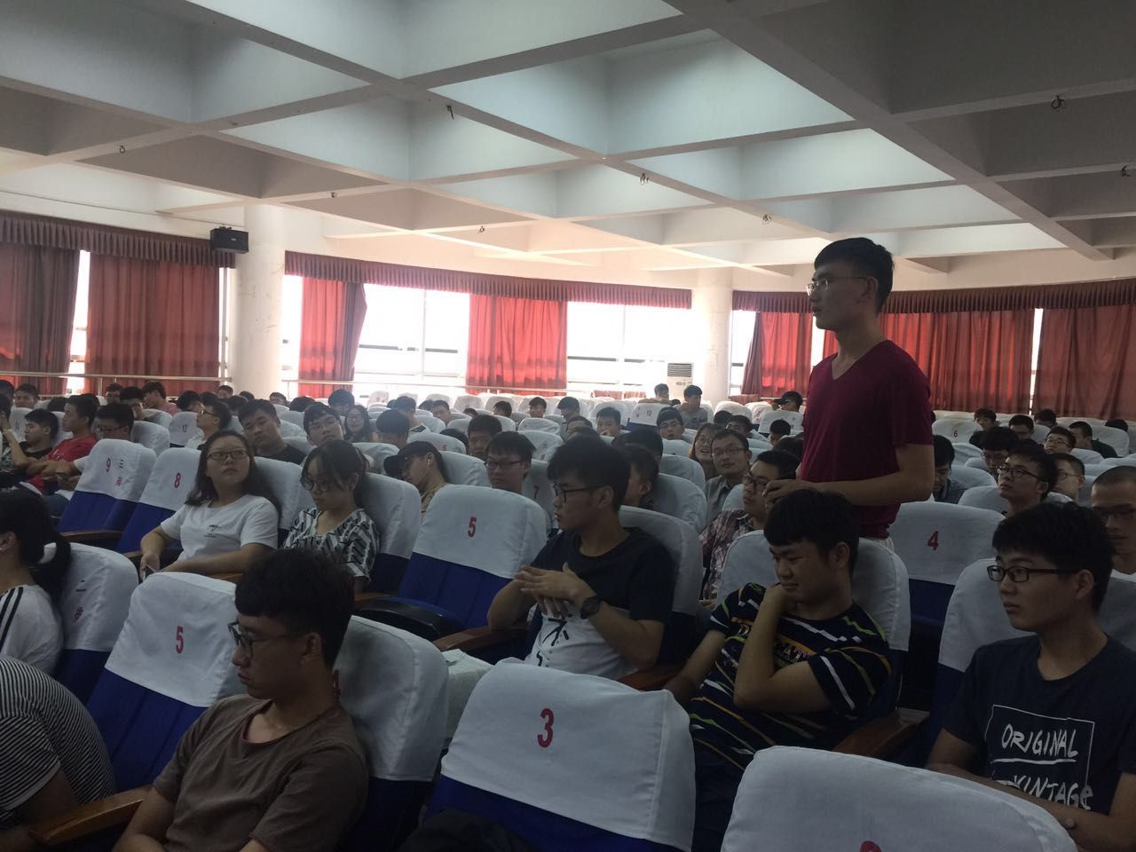 2017年9月7日下午2点30分,中国成人免费毛片在6号楼学术报告厅为全体14级计划考研学生举行了一场别开生面的考研指导、动员大会。会议由学院党总支副书记周红熳老师主持,机械学院院长丁跃浇老师、副院长张晓红老师、南湖学院谭晶莹博士、原13级辅导员唐鉴老师、班主任杜青林老师及14级辅导员王子嘉老师出席本次会议。