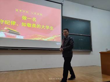 宣讲过程中,胡文静以“做一名守纪律、知敬畏的大学生”为题面向新生授课,就学校章程、学籍管理、考试纪律、学业预警、学生权益等方面展开,详细解读学校相关管理规定和规章制度,明晰学生权利与义务。胡文静结合实际,运用真实案例生动形象地阐释了“行为规范必不可少”的教育主题。宣讲过程中,21级新同学积极互动,课堂氛围轻松活跃,反响热烈。