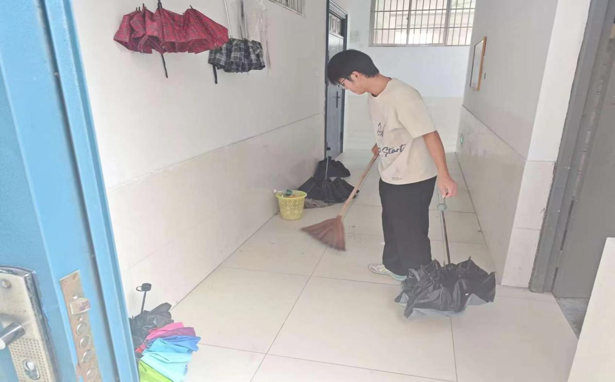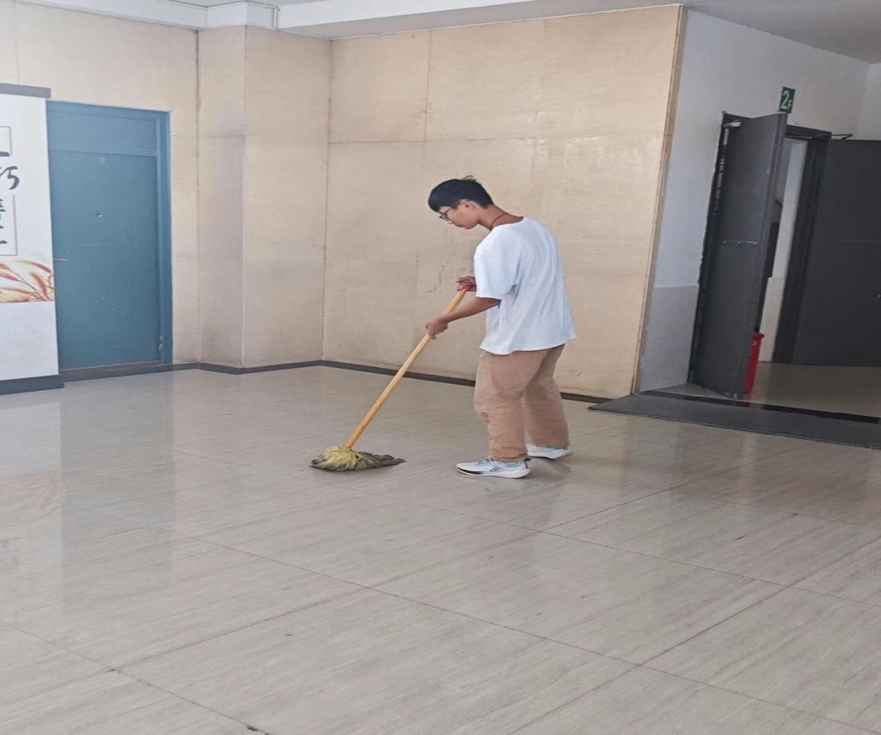 活动伊始,学生们拿起各自的劳动器具,在班委的有序组织下开始打扫卫生。在劳动过程中,同学们以班为单位,团结合作,分工明确,对每个区域做到了细致的打扫。经过同学们的认真打扫后,两栋教学楼和宿舍楼焕然一新。此次教育活动,大家深浸于劳动工作中,充分展现了同学们饱满的精神状态和劳动热忱。
