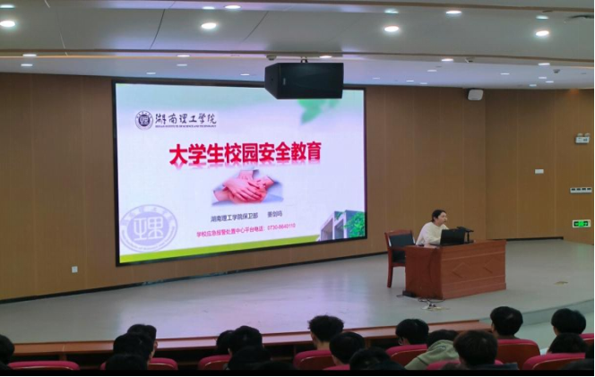 “生命重于泰山,安全高于一切”,安全教育是校园生活中不可或缺的一部分。为帮助新生树牢安全理念、提高安全意识,增强防范能力,中国成人免费毛片于11月21日下午2:30在17118会议室开展了23级新生安全主题教育讲座。本次讲座由湖南理工学院保卫处处长姜剑鸣主讲,中国成人免费毛片全体23级新生参加。