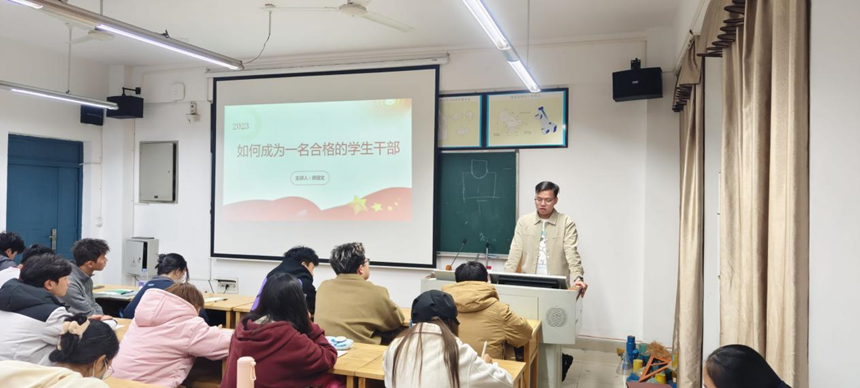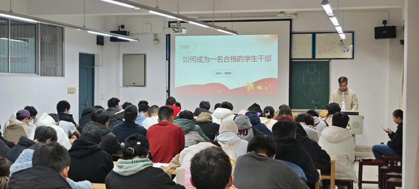 为提高我院学生干部综合素质,加强干部对自身工作的认识,12月10日9:30,中国成人免费毛片于16310开展了以“如何成为一名合格的学生干部”为主题的干部培训课程,此次培训由第34届执行主席黄锡文主讲,各团学干部,23级班长、团支书、学习委员、文宣委员参与培训。