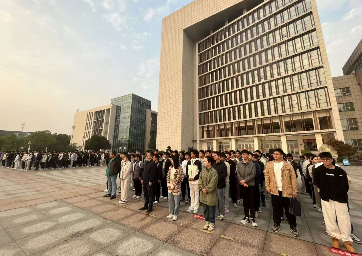 11月4日上午7时,我院在南院图书馆前国旗广场迎来一场庄严肃穆的升国旗仪式。学院党委书记徐丹、副院长张敬、党委副书记李凯、学校科学研究院副院长李超、党委学工部资助中心主任王子嘉,辅导员李紫薇、曾英姿出席,2024级全体本科生、研究生和2022级部分同学参加本次升旗仪式。