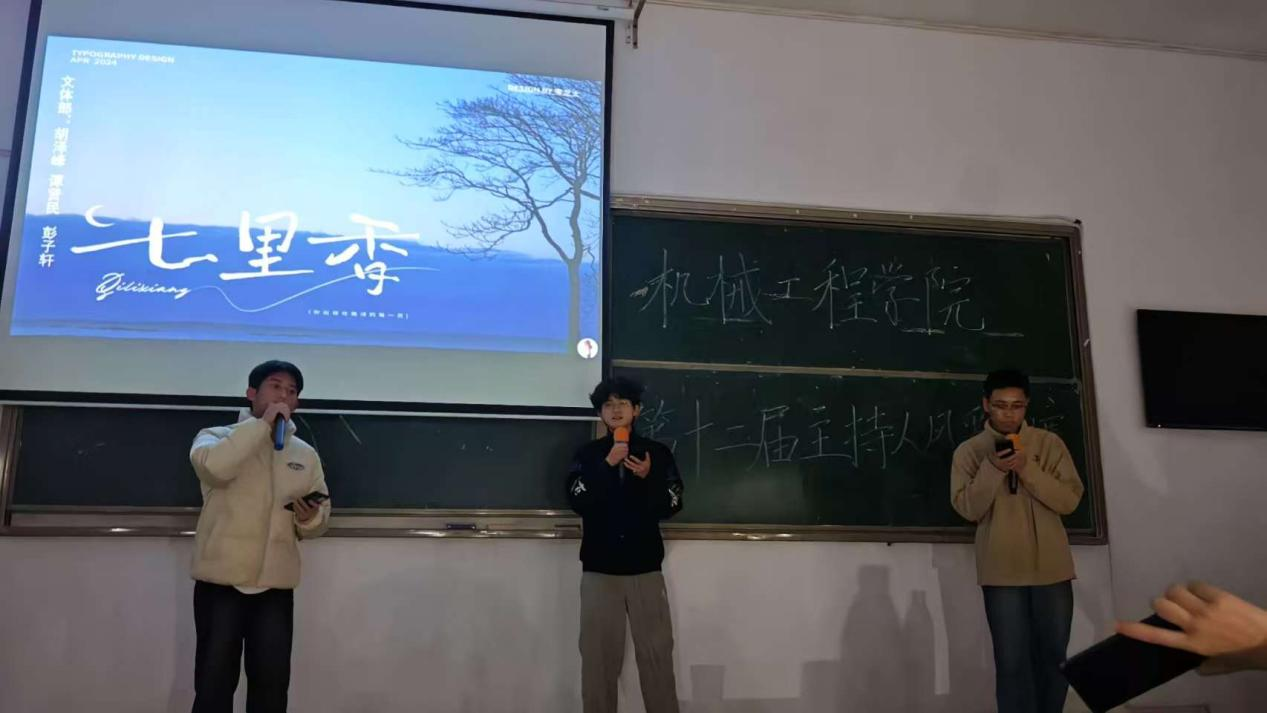 12 月 6 日 19:00,我院于 9T2 教室成功举办第十二届主持人风采大赛决赛。本次比赛特邀学院团委副书记曾英姿、学校大学生艺术团执行主席蔡馨悦、办公室主任郭维新、联络部部长窦玲燕以及第十一届主持人风采大赛冠军曾紫轩担任评委,大赛由陶晓灿主持。