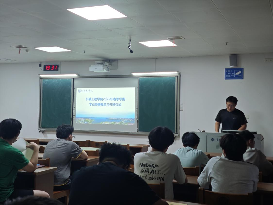 为进一步加强学风建设与管理,深化学业指导,5月13日19:30,我院于12408教室举行2025年春季学期学业预警晚自习班开班仪式。开班仪式由研究生助理辅导员邓磊主讲,全体学业预警同学以及部分学生党员参加。