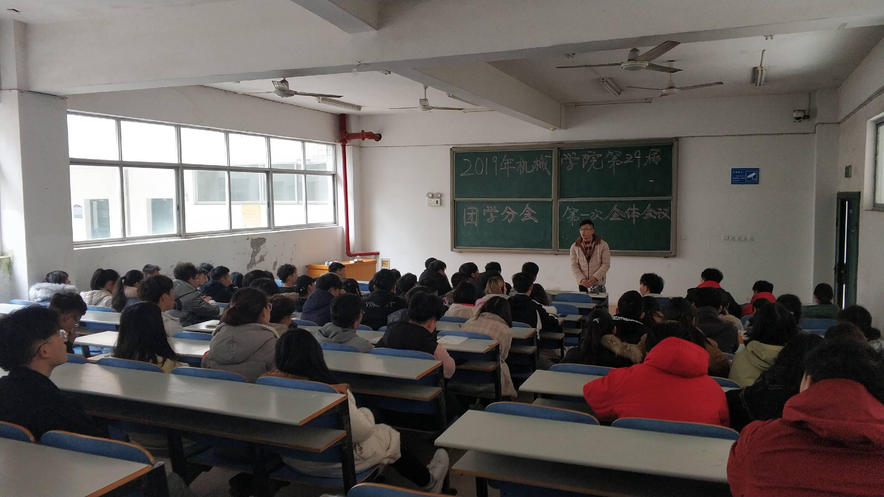 在开学之际,机械学院为准备换届事宜,于2月28日中午在15113召开全体会议。 首先,吁锤老师进行了会议内容讲话。他首先祝贺大家在新的一年里都能学业有成,之后他开始讲述本学期的工作重要性及严峻性,并鼓励大家继续加油,砥砺前行,为学校创大申博而奋斗。之后由29届团学分会主席张毅进行进一步的总结,他激励着17级同学留下来继续为学生会而努力,也祝愿学生会能在之后的日子里发扬光大。
