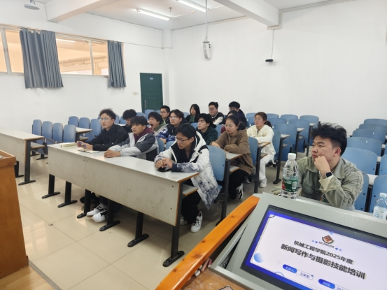 为进一步做好新形势下的宣传工作,提升新闻宣传骨干的业务能力,3月18日下午14:30,我院在15116教室组织开展2025年度新闻写作与摄影技能培训。学院宣传专干王荣荣担任主讲人,青年新媒体中心执行主席欧洪志主持,新闻部与采编部全体同学参加。
